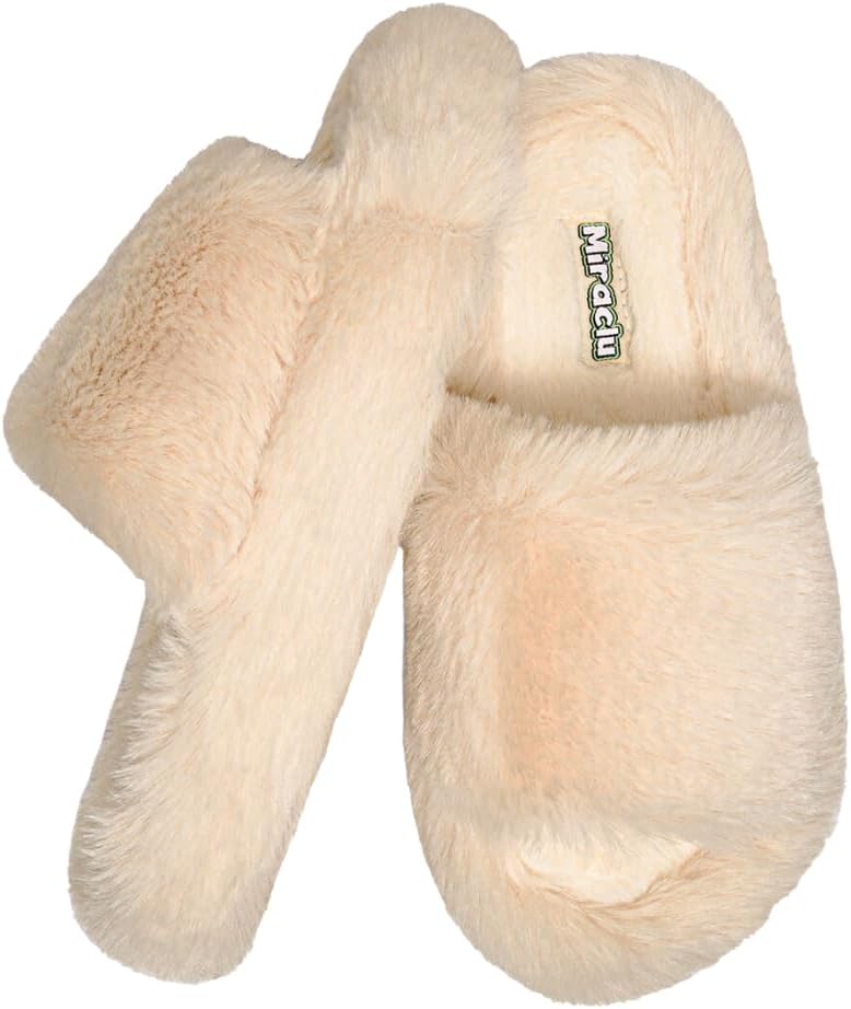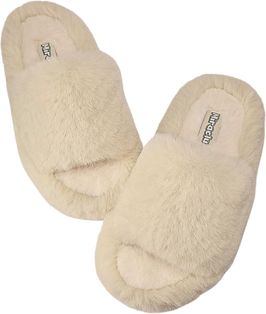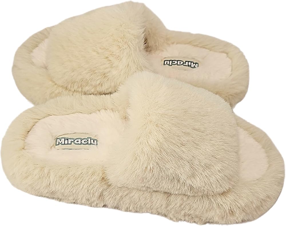 Womens Slippers Memory Foam House Bedroom Slippers for Women Platform Fluffy Slippers Fuzzy Plush Anti-Skid Furry Open toe Bedroom Shoes Faux Fur Slides for Women Trendy Womens Slippers Comfy gift