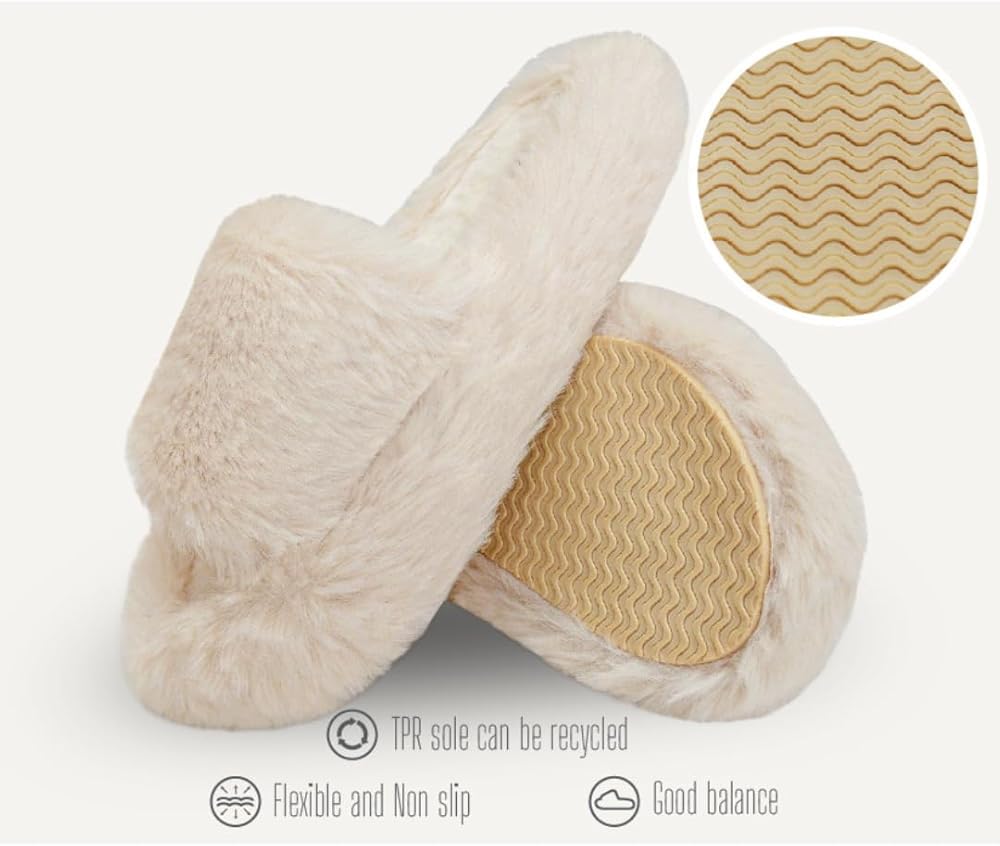 [ANTI-SKID SOLE & DURABLE]: Lightweight slippers with TPR outsole, very resistant to slip and they are quiet when you walk. Soft slides for women that provide an overall feet support with thick sole.