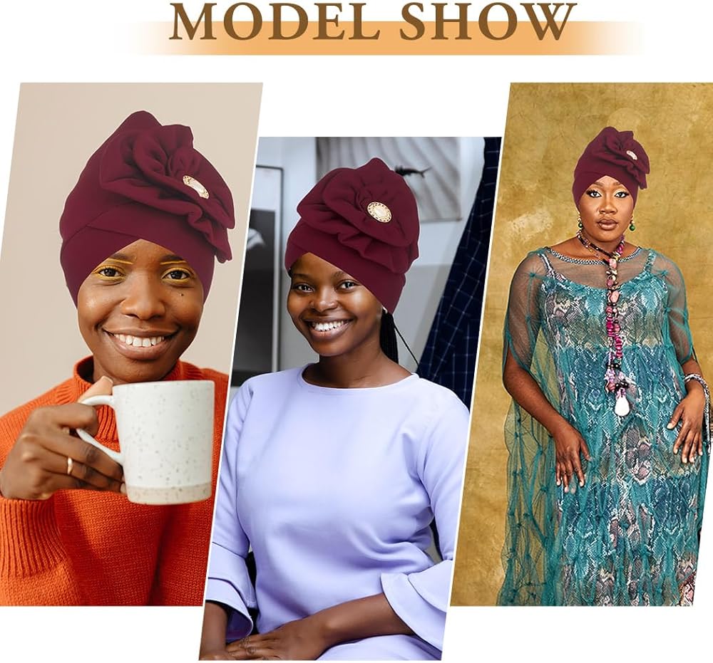 Materials: this african big flower rhinestone turban hat is made of high quality polyester, decorated with large flowers studded with rhinestones, bright colours, air-layer design, soft and comfortable fabric, breathable, warm in winter, spring and autumn can also be worn.
