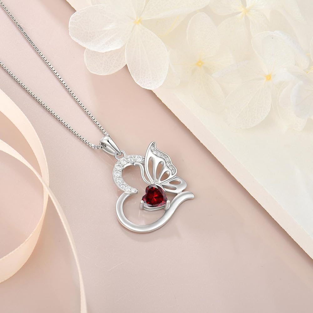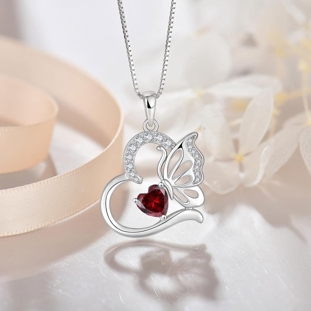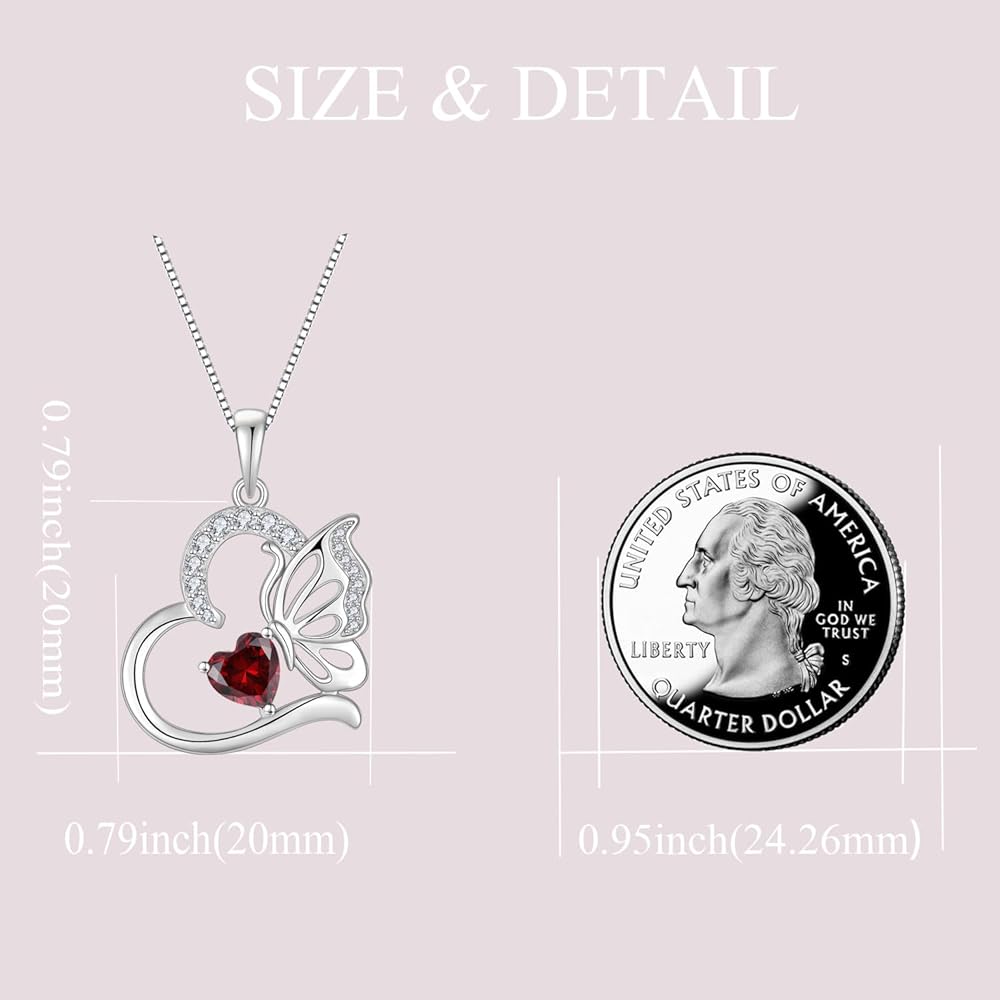 Butterfly Necklace for Women 925 Sterling Silver Heart Pendant Birthstones Jewelry Gift
