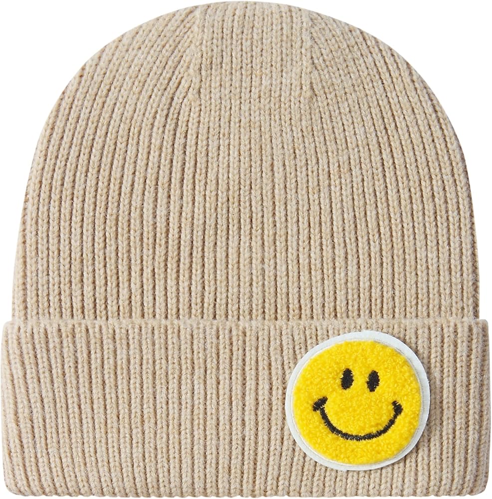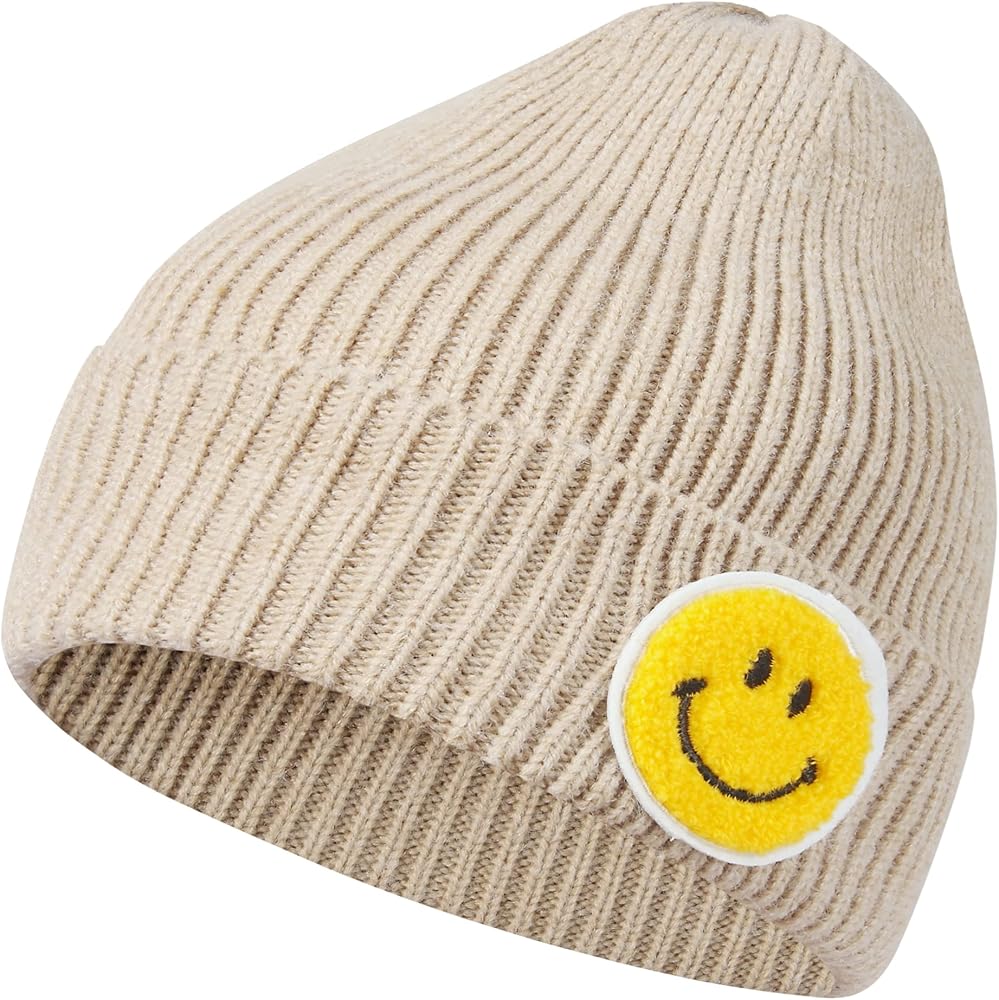 🔸Features: acrylic and nylon blend soft thick knit, comfy and stylish, elastic pull on, cuffed hem, warm and cozy, high quality, unisex beanie hat with cute yellow smile face embroidered patch, machine washable with cold water and hang dry