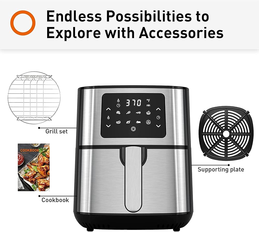 Comes with a non-stick pan, a dishwasher-safe detachable basket, a fingerprint-resistant stainless-steel finish, and a cookbook for you to explore more possibilities in the kitchen