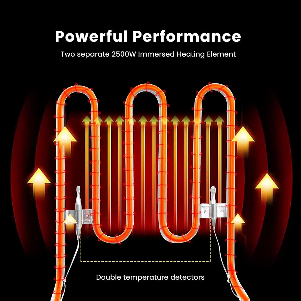 POWERFUL PERFORMANCE - Equipped with a powerful 2500W heating element in each basin, this deep fryer guaranteed to fry food quickly and maintain oil temperature; Always provide uniform fried, crispy and delicious food; Perfect for frying chips, fish, chicken, doughnuts, fritters, onion rings, shrimp, French fries, etc