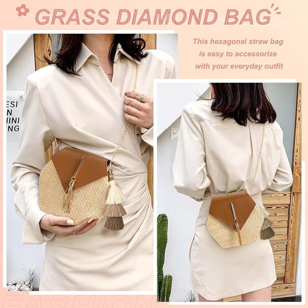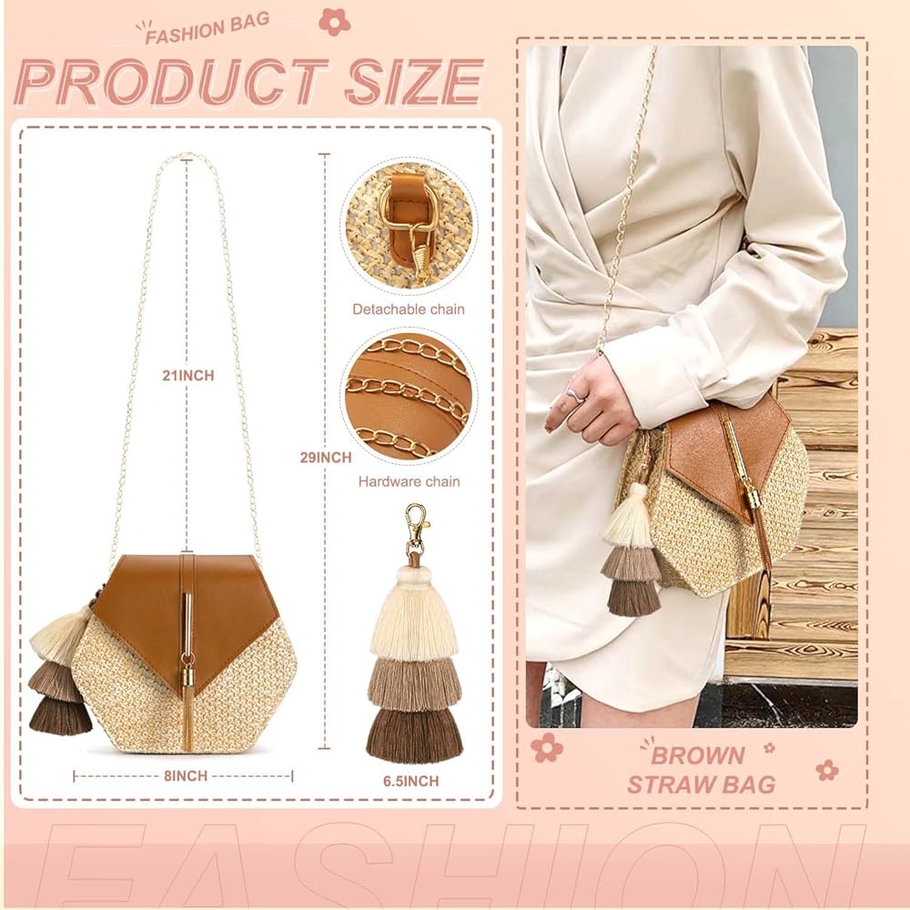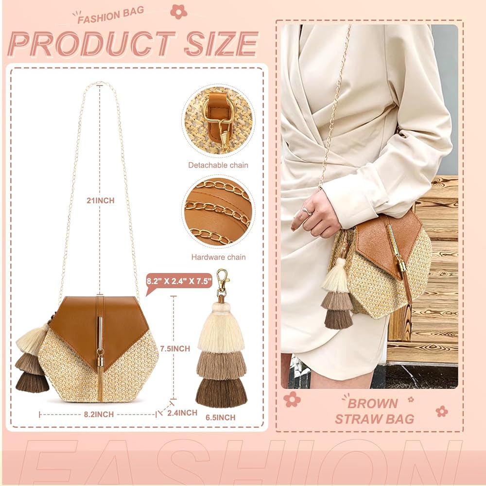 Large Capacity Straw Crossbody Bags for Women: The beach bags for women vacation measure 8.2" x 2.4" x 7.5" with a 21" shoulder strap, our straw tote bag offers ample space to carry essentials such as an iPad, wallet, cellphones, sunglasses, cosmetics, and more.