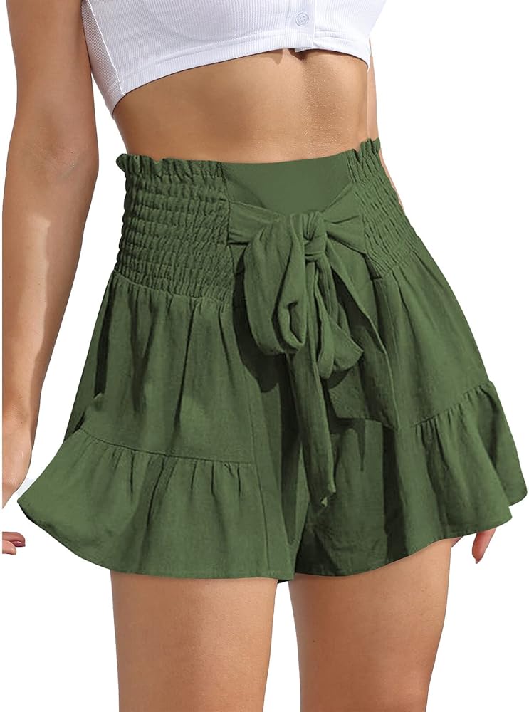 Design: This shorts for women high waisted is elaborately designed with ruffle hem, high waisted, elastic waist, and decorated with bow tie, making you look more cute and attractive.