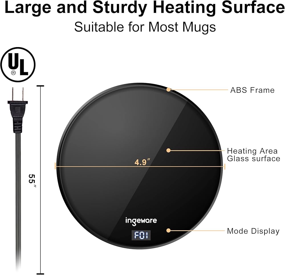 3 TEMPERATURE SETTINGS: Ingeware mug warmer is designed to meet the beverage temperature you need, when you need a hot drink at home or office, it can help you brew the coffee, tea, milk and cocoa