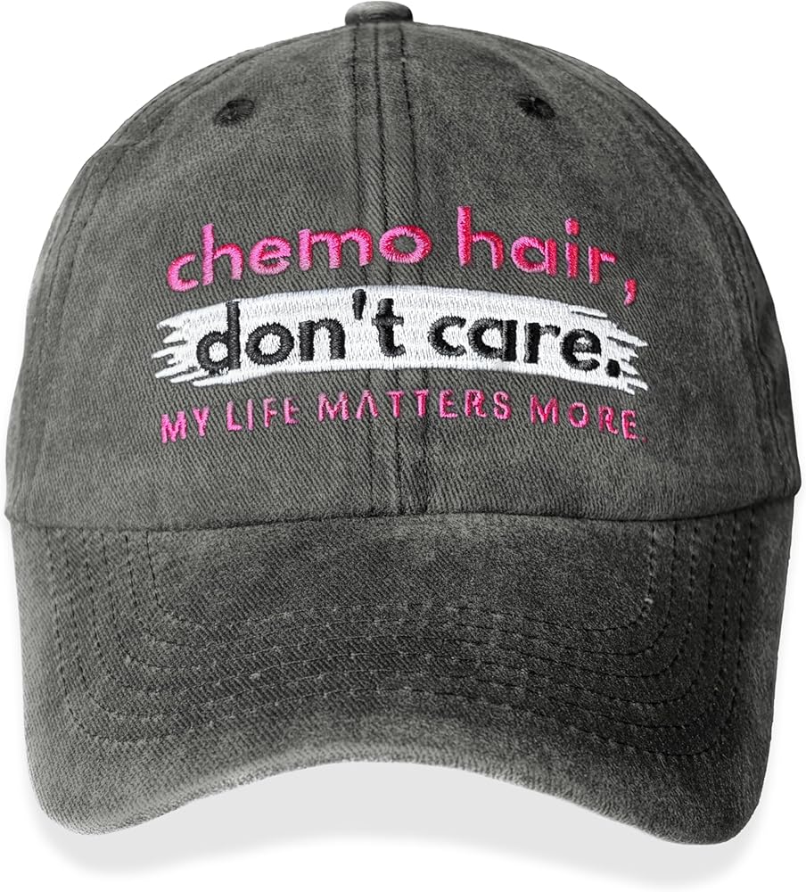 Empowering Statement: Showcase your strength with the "Chemo Hair, Don't Care" embroidered cap, a powerful expression of resilience and support for those undergoing chemotherapy.