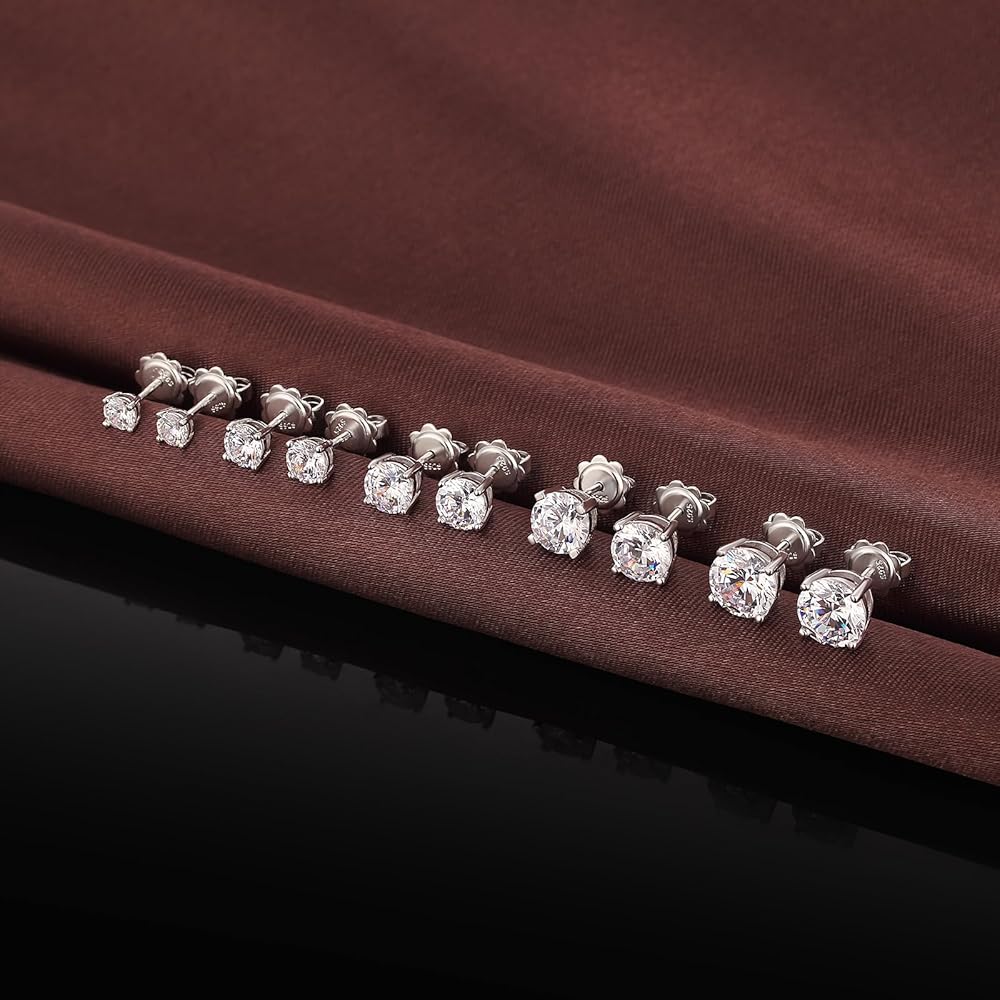 ❤. 925 Sterling Silver Round Stud Earrings Sets. Dimension Available: From 4mm to 8mm. Sparkling 5A+ Cubic Zirconia Silver Earrings for Men Women.