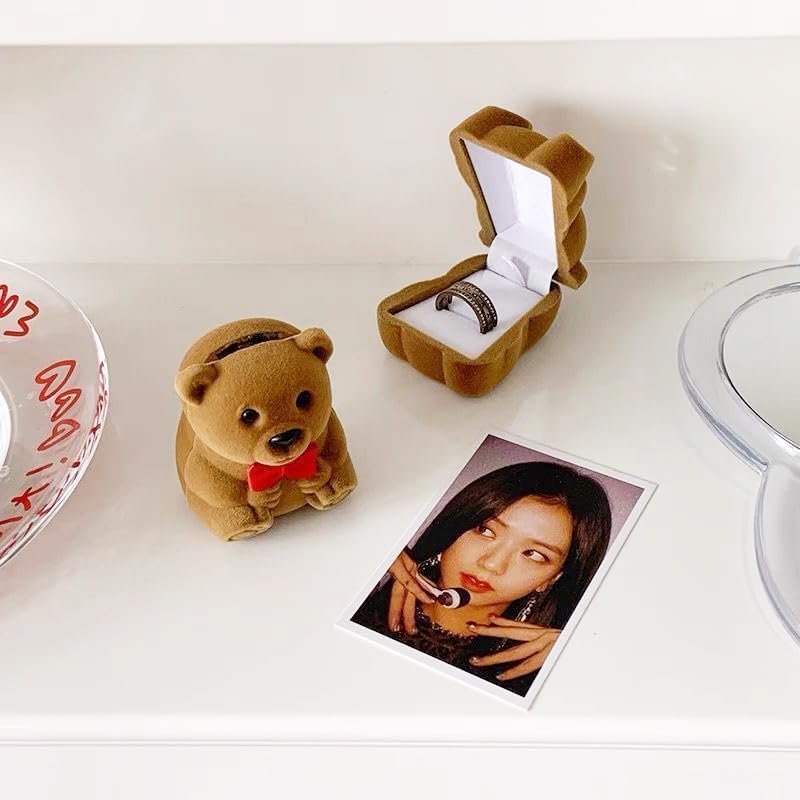 1 xBinaryABC Mini Bear Ring Box,Valentine's Day Rings Gift Case,Proposal Engagement Wedding Ring Box,Valentines Day Supplies