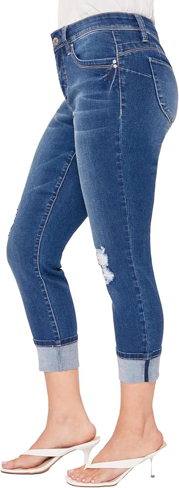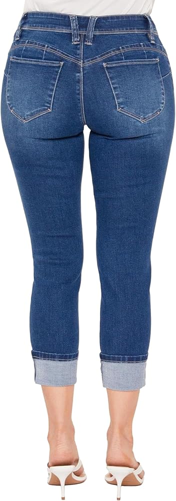 The flexible, specially designed stretchy Wannabetttabutt waist band will define your waist and accentuate your body! Our flexible shape defining fabric with hug your curves in all the right places while giving you the right amount of all day comfort and flexibility! The skinny cuffed petite jeans for women are designed to give you an elegant look while giving all day comfort and stretch.