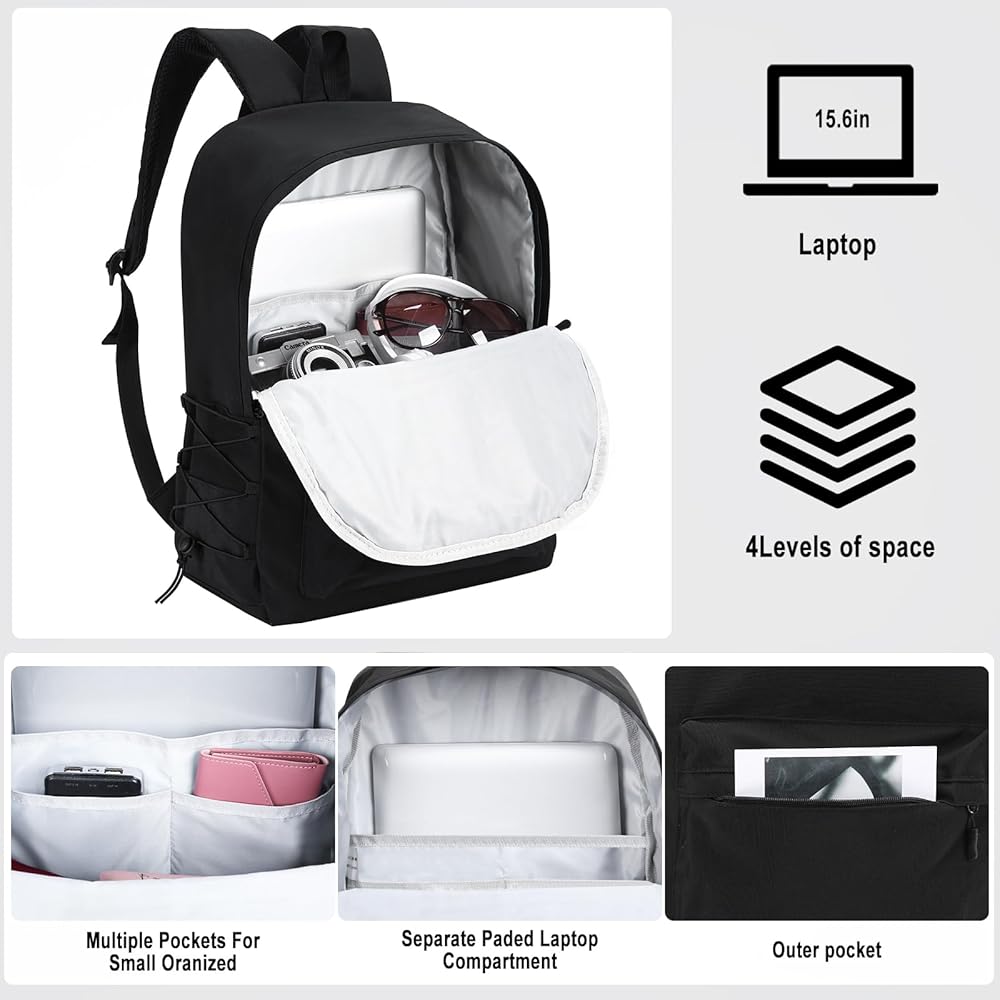 Laptop backpack 15.6 inch with Anti-Theft Pocket: The backpack has an anti-theft pocket placed at the back to keep your valuable items like phones, wallets, and passports safe and secure from pickpockets.