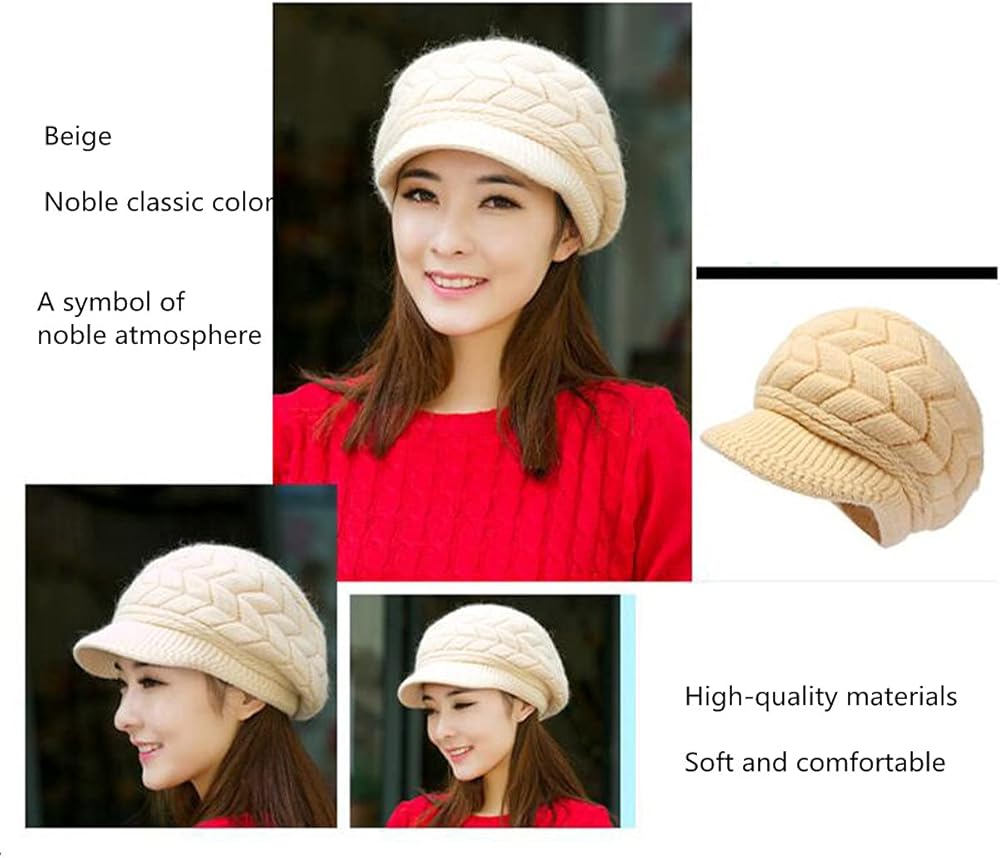 🍀👧🎁Innovative product:Ladies knitted hats make you look good and fashionable in cold weather.The beret is knitted with pointed double arrow heads and has a stylish double-layer design with a sun visor.This beautiful hat will be a winter fashion trend.