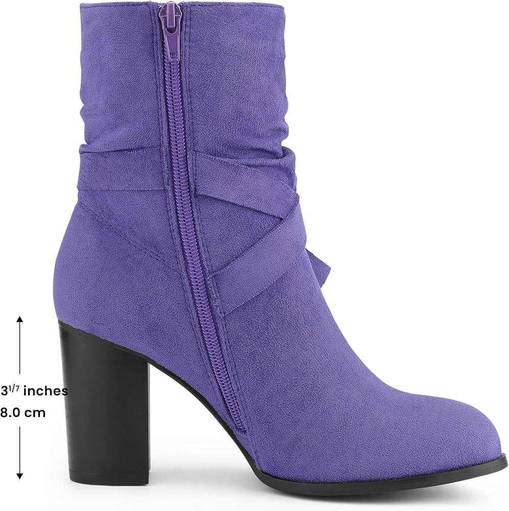 Allegra K Women's Slouch Chunky Heel Ankle Boots