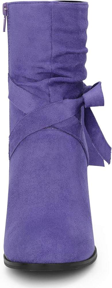 - Block Heel, Ankle Booties, Slouchy Boots, Bow Decor
