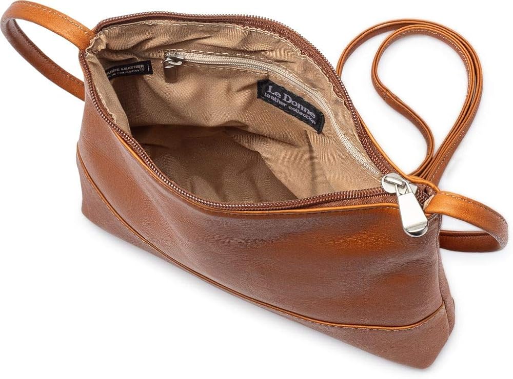Maintain a sense of style with your bag and protect your everyday essentials when you use the Le Donne Leather Carry Along Vaquetta Leather Crossbody Bag. Our bag consists of a smooth and supple full grain Colombian Vaquetta cowhide leather that will look amazing for years. The slim silhouette in the crossbody bag is an ideal design when you only want to carry a few items for a day of activity. Each of our bags is uniquely styled and priced affordably, creating a natural and casually classy look that complements any outfit. Genuine Full Grain Vaquetta Leather, Lined interior, 60% polyester, 40% nylon, Exterior pockets: None, Interior pockets: Zip and Slip Pocket, Closure type: Top Zip Closure, Strap length: 50.5”, Drop length: 24”, Dimensions: 9.5”x8.5”x2”, Weight: 6 oz., Hardware: Black, Navy and Gray with silver tone, Tan and Cafe with brass tone.