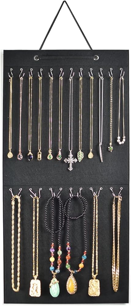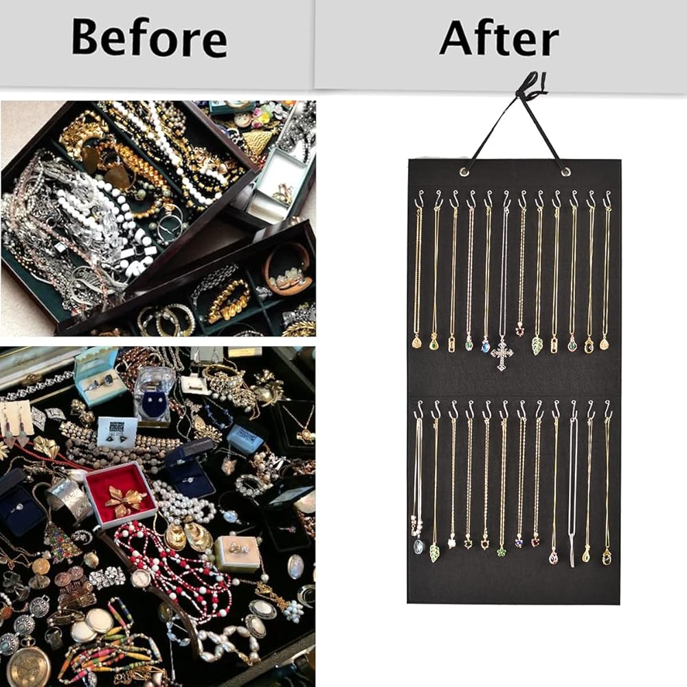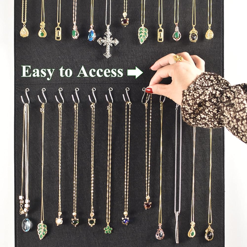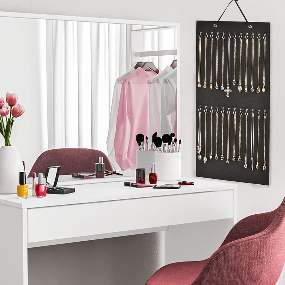 Necklace Holder,Hanging Necklace Jewelry Organizer,Double Side with 48 Anti-rust Hooks Wall Mounted Jewelry Display Organizer,Easy Storage for Necklace,Bracelet,Earring,Chain
