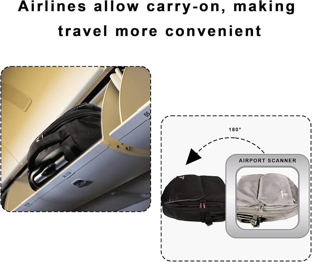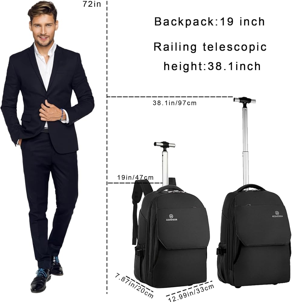 The trolley backpack contains a thick padded laptop compartment that holds up to 15.6" laptop and protects your laptop from damage. The main compartment is roomy enough to hold your books, clothes and more. Multi-pocket storage compartment design keeps your items more organized.