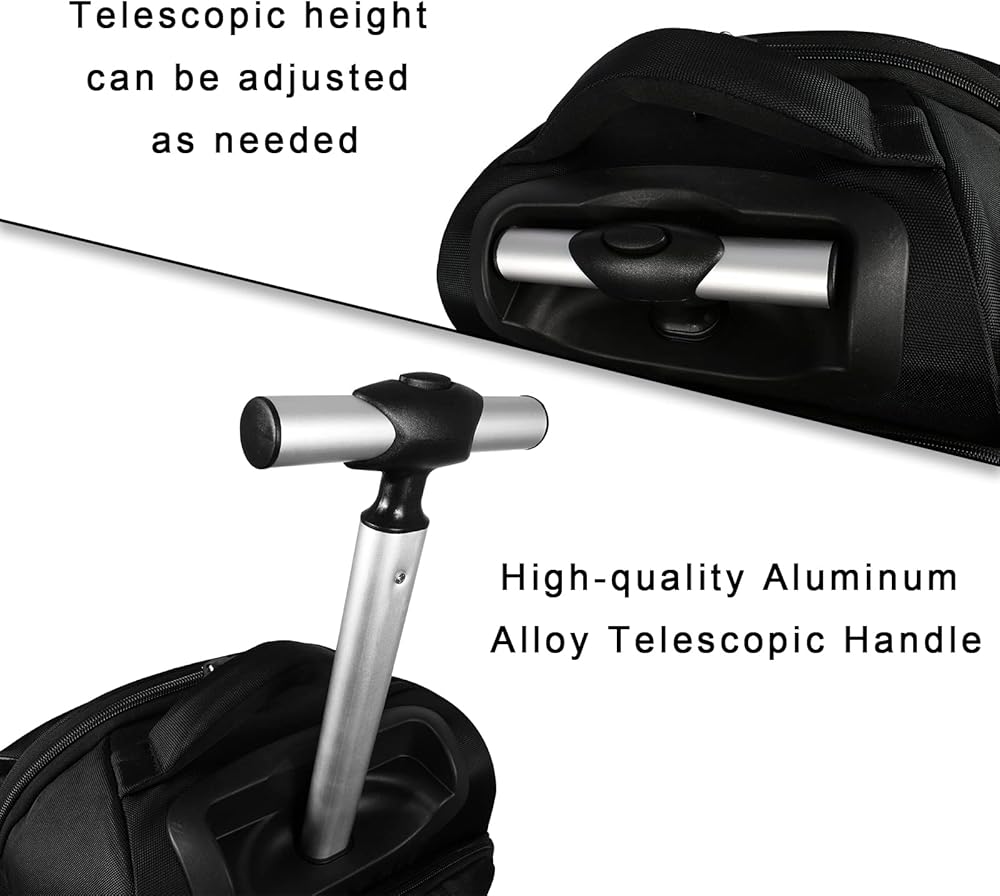 Made of high-quality water resistance Oxford cloth and with a retractable aluminum alloy pole, which makes the rolling backpack more stable and durable.