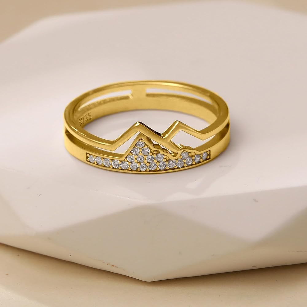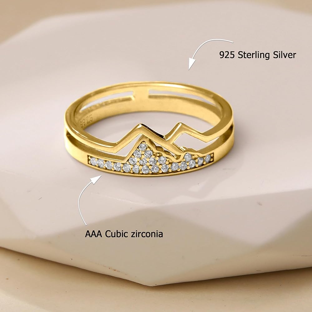 925 Sterling Silver Mountain Ring for Women CZ Hill Faith Moves Moutains Inspirational Rings to Daughter Mom Statement Wave Ring Dainty Keep Climbing Bands Wedding Birthday Gifts Jewelry