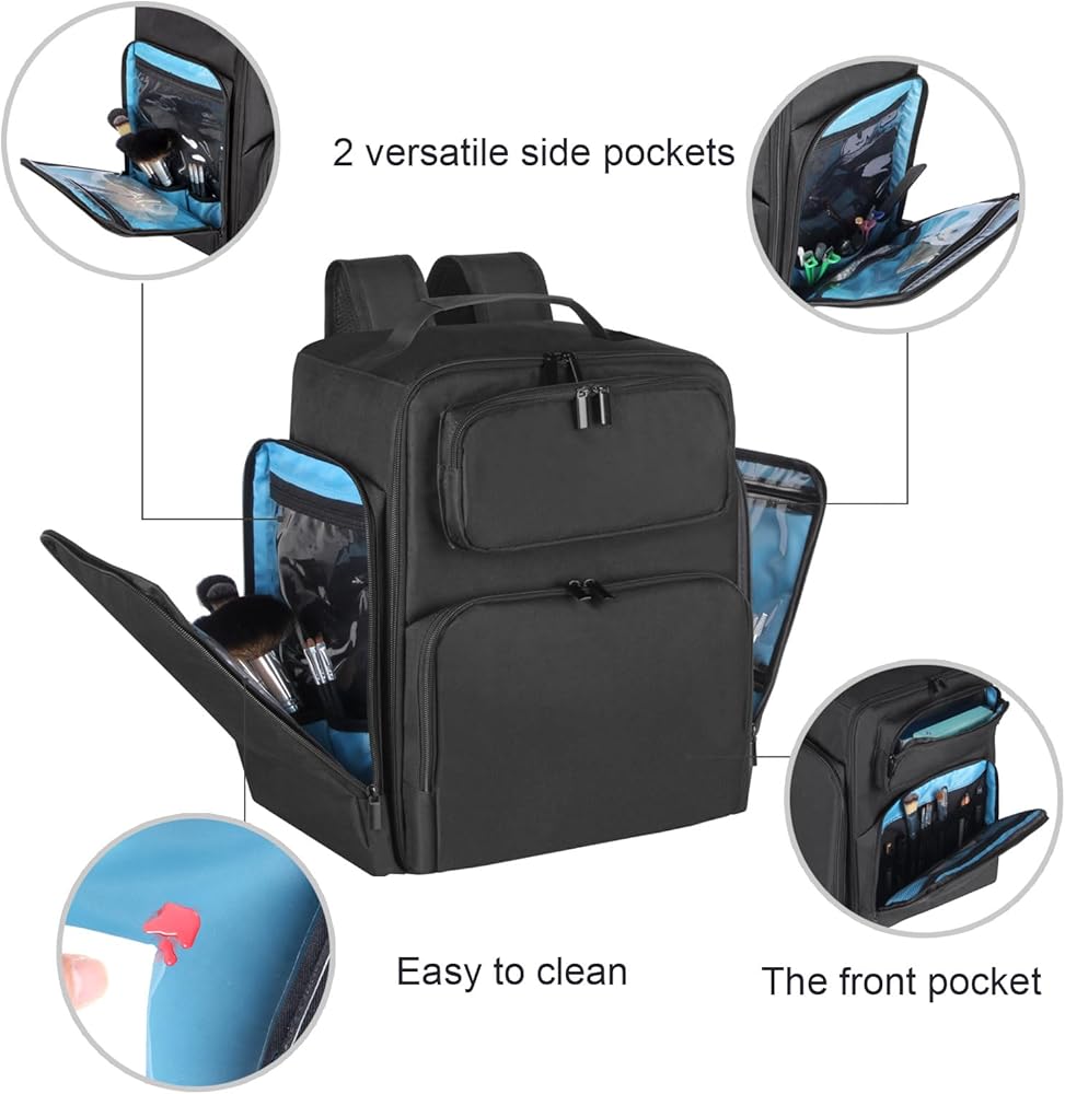 Versatility to meet your needs - Two side sections with pockets and elastic bands offer roomy storage for flat makeup. A wet cloth can be used to wipe the translucent region. This cosmetic storage backpack is the ideal travel companion, whether you're a mobile professional makeup artist or just love to keep your cosmetics organized.