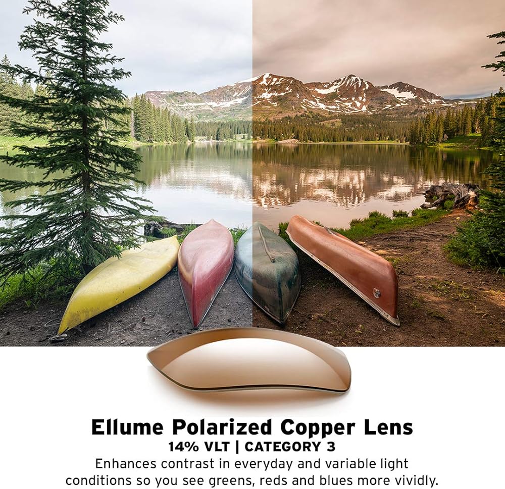 ELLUME POLARIZED COPPER LENS: 14% Visual Light Transmission (VLT) and designed to enhance contrast in everyday and variable light conditions so you see greens, reds and blues more vividly.
