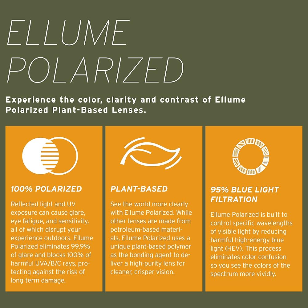 POLARIZED SUNGLASSES: Ellume Polarized lenses eliminate glare and block 100% of harmful UV rays, protecting against the risk of long-term damage to your eyes.