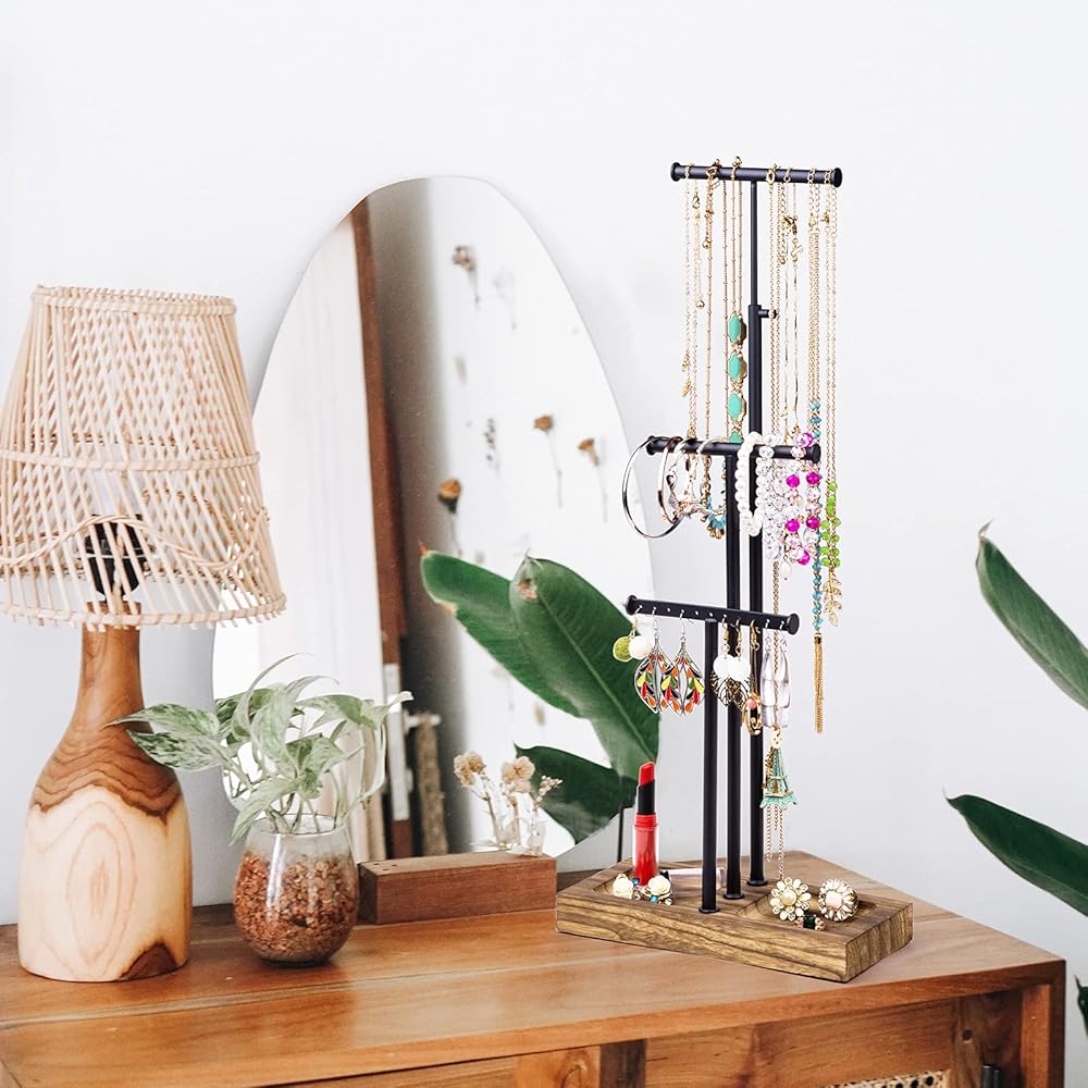 Ample storage - Jewelry Tree Features 3 Tier design, provides ample storage to organize and display necklaces, bracelets, rings, earrings, watches and more; shortest bar