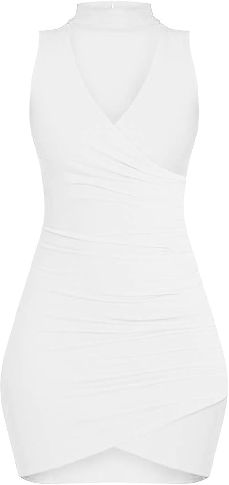 Work some seriously fierce style in this ultra-hot curve hugging bodycon dress. In a contemporary crepe fabric and featuring choker neck design, this smokin' ruched bodycon dress is a total must-have. Just add some statement heels for a knock-out look.