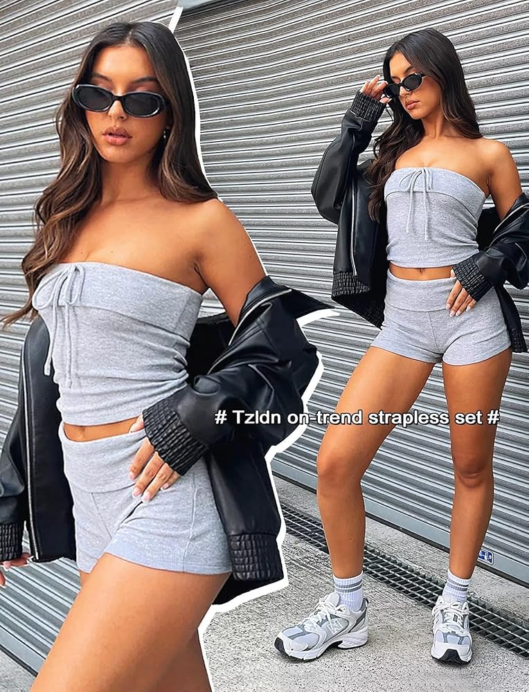 ❤ Serve up style with our trendy and comfy 2 piece lounge sets for women. Basic tube top and shorts sets suitable for different body shapes. Soft, lightweight, Slim fit, look simple and fashionable Pj sets.