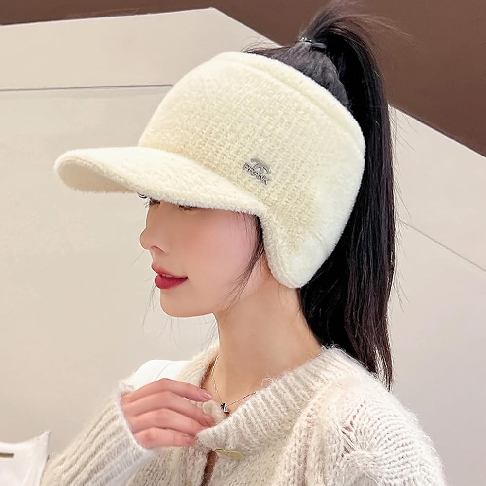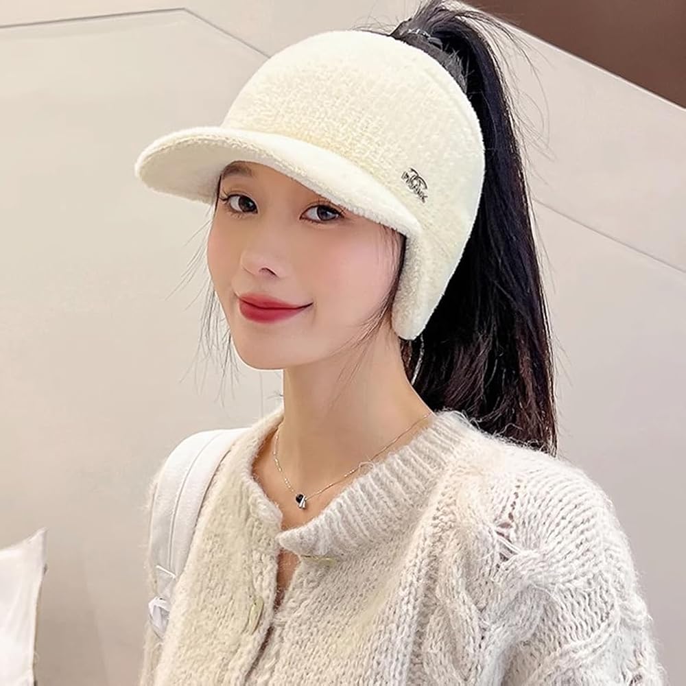 This is a stylish visor hat to keep your ears warm, shade your eyes or glasses from rain or sun, and allow you to wear hair up high on head.