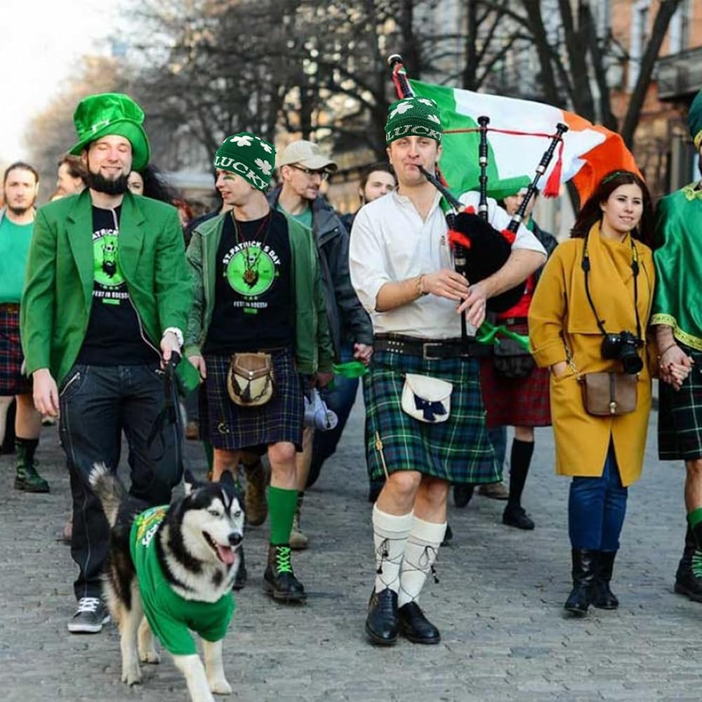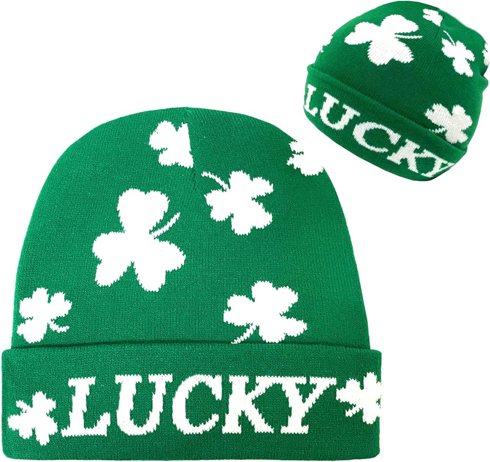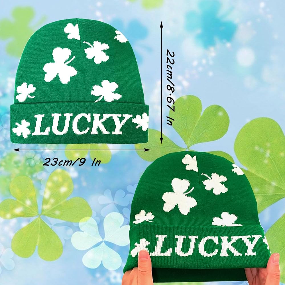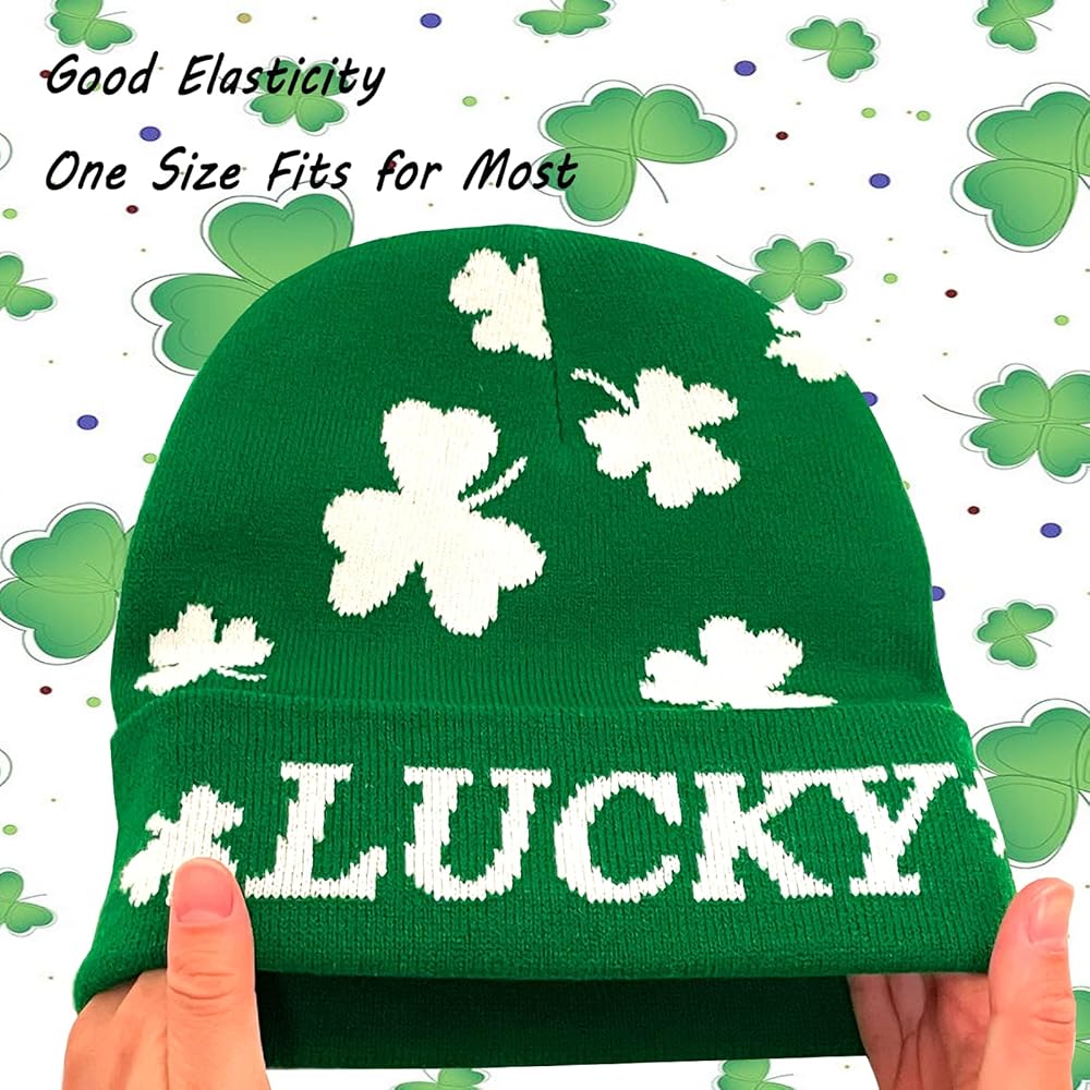 Classic Shamrock Design & Color Match: Using classic green and white, green with white shamrock and LUCKY on the beanie brim, suitable for St. Patrick's Day wearing to add festive atmosphere.