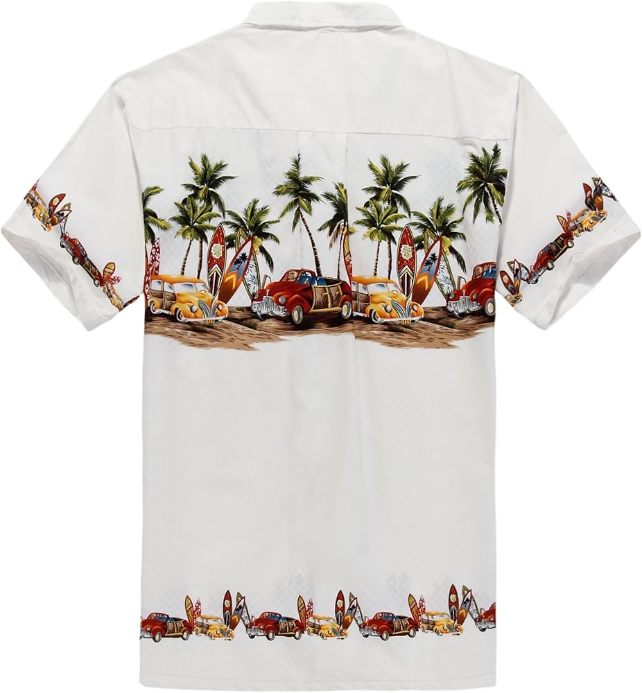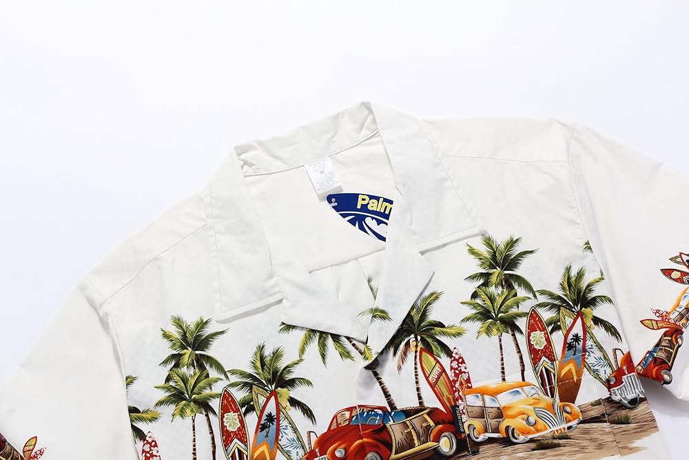 Palm Wave Men's Hawaiian Shirt Aloha Shirt L Off White Vintage Cars