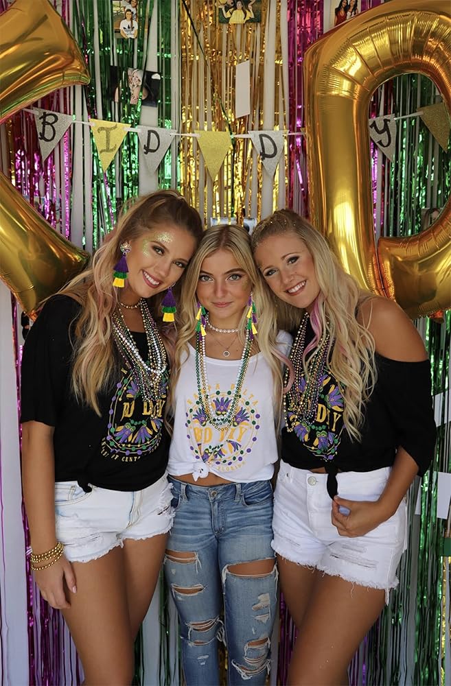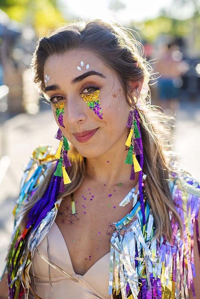هدية كرنفال مثالية - دع الأوقات الجيدة تتدحرج! استعد لماردي جراس مع هذه الأقراط الرائعة الممتعة! هذه الأقراط ذات الطبقات البوهيمية ذات الشرابة المتدلية التي تناسب نمط حياتك. هدية مثالية للأم والأخوات والأصدقاء والمعلمين والزوجة والبنات أو من تحب في حفلات ماردي جراس، وأعياد الميلاد، وعيد القديس باتريك، وعيد الفصح، وعيد المعلم، والهالوين، والكريسماس، والذكرى السنوية، وعيد الأم، والتخرج، وكل العطلات وما إلى ذلك. تحدث عن أقراط Mardi Gras الممتعة هذه!