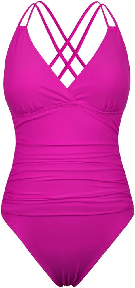 Tummy control swimwear with adjustable crisscross straps at the back makes this swimsuit style really stand out. Flattering and flirty swimming suit for women.