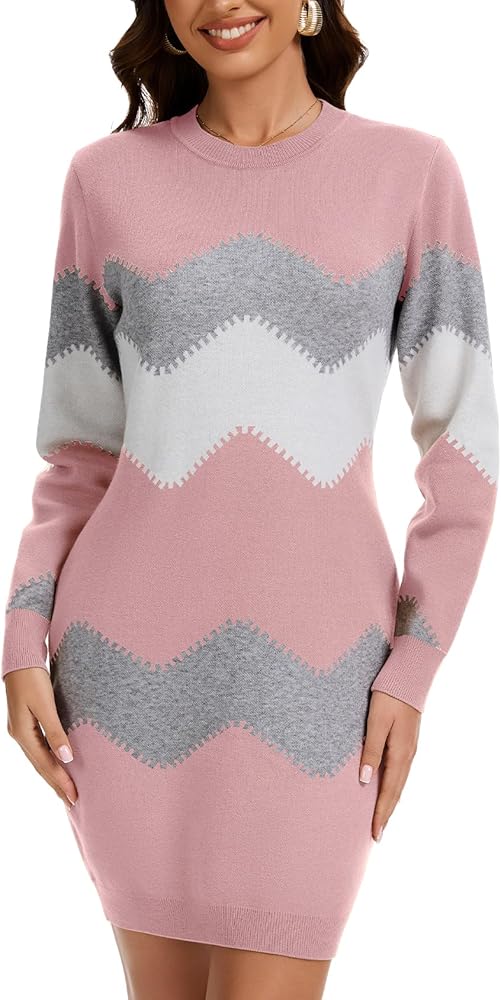 Round neck,long sleeves,slim fit,bodycon dress,hips-wrapped,great gift choice for women,ladies,teen girls.the women slim fit knit bodycon mini sweater dress shows your body curve perfectly and you'll be more sexy after wearing it.