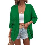 3/4 Sleeve Open Sweater: The open front kimono style gives it an effortless feeling. And the 3/4 sleeves are just the right length to protect your skin from the hot summer sun.
