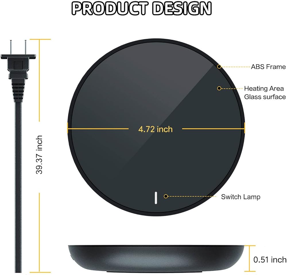 ☕【Simple and Compact Design】4.96" in diameter, 0.47" in thickness, this coffee warmer will not take up a lot of space. If you love hot drinks, it will be an excellent choice to prepare one on your desk.