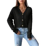 SHENHE Women's Ribbed Knit V Neck Button Down Long Sleeve Drop Shoulder Cardigan Sweater