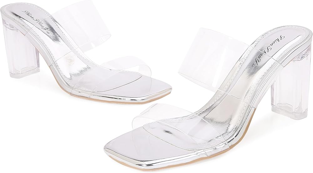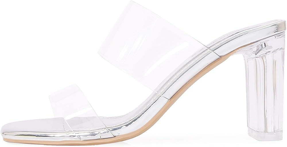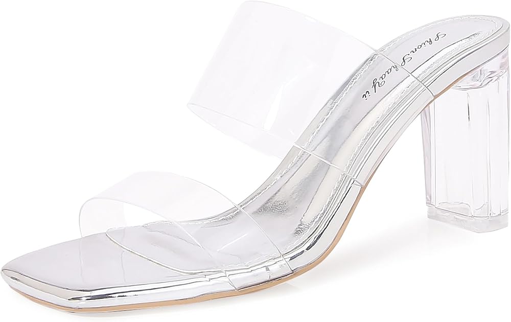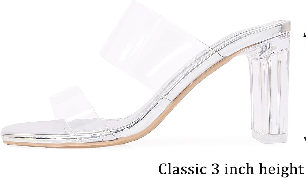 Slip on mule style:Square toe clear sandals features a comfortable clear heel, open-back slip on style, easy on and off.