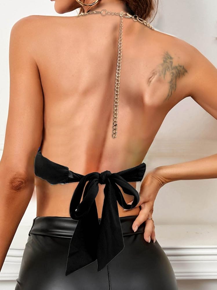 2.Tie up bra jewelry are very sexy and fashion. First of all, The neck tie is a very stylish wide rope, which can be tied more comfortably and form a more beautiful back,In addition, you can adjust the straps according to your own needs, and secondly, The color of the clothes is also very suitable for party club or rave party etc, which can make you stand out in the crowd.