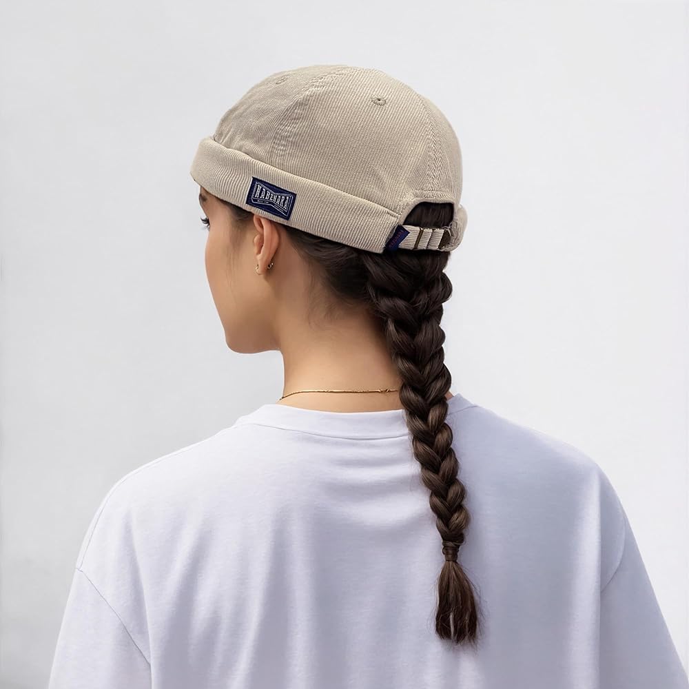 VINTAGE DOCKER CAP BRIMLESS HAT - Get ready to rock your new favorite brimless hat.Our exclusive size is designed to fit most adults perfectly, with a regular head circumference ranging from 56-60cm/22.04-23.62 inches. And the best part? You can easily adjust the hat to fit your unique noggin with the brand-new metal copper buckle closure. Plus, with a height of 10cm/3.94 inches, this skullcap is sure to make a bold statement wherever you go.