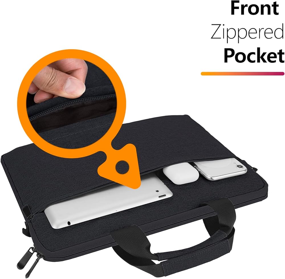 Capacity: One main pocket for a laptop and the front zippered pocket provide additional space for mouses, chargers, documents, notebooks and other items for convenience and use. An ideal protective laptop bag for daily use, travel and business.