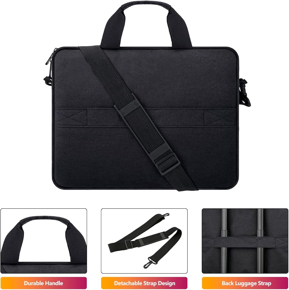 Convenient Design: With a detachable strap and sturdy handle, the laptop sleeve can be used as shoulder bag, handbag, cross-body bag. Besides, the luggage strap on the back makes it easy to put the laptop bag on your suitcase or boarding case.