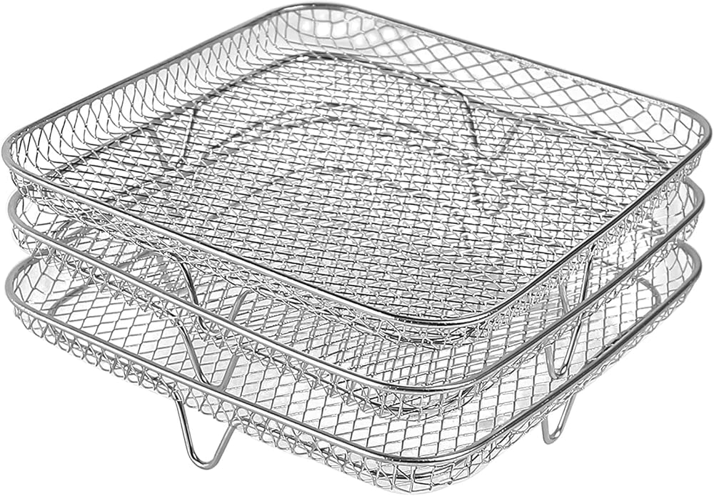 kydely Air Fryer Rack compatible with Instant Vortex,Philips,COSORI Air Fryer,8‘’ Square Three Stackable Racks,Stainless Steel Multi-Layer Dehydrator Rack Fit all 4.2QT-5.8QT Air fryer Accessories