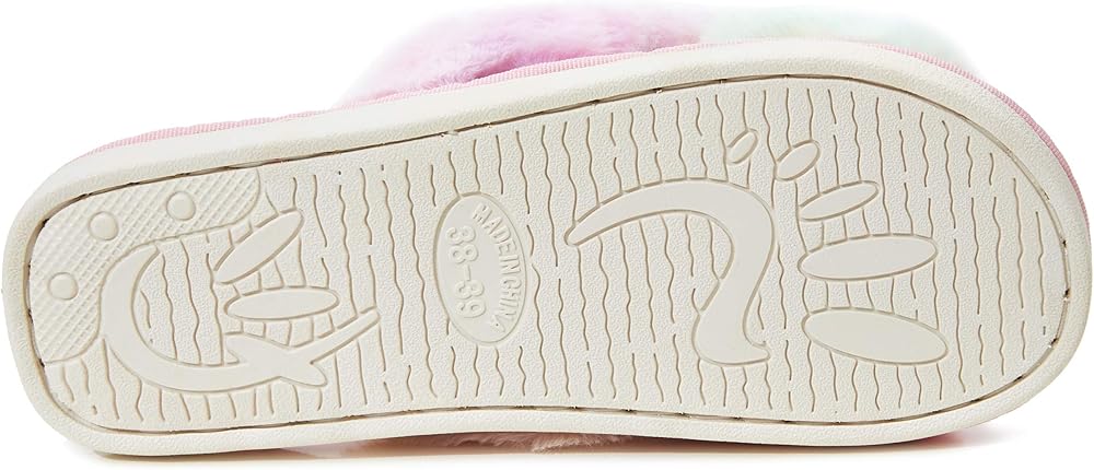 Stay comfy and stylish with these tie-dyed themed crisscross fuzzy faux fur slide slippers for women. These slippers have good resistant so you do not slip and also make great gifts for family and friends. Wear these slippers at the beach, indoors, outdoors, or just for casual wear.