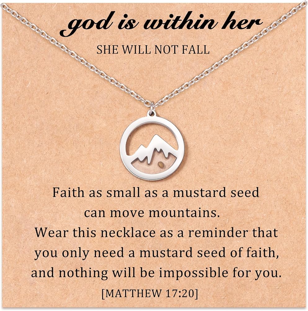 ✝️【MUSTARD SEED NECKLACE FOR WOMEN/TEEN GIRLS】-A meaningful mustard seed necklace with an inspirational message card as a reminder that god is always within her, and she will not fall, you only need a mustard seed of faith, and nothing will be impossible for you.