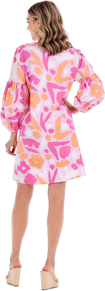 Showcase your spring and summer style with this Cotton poplin dress. This dress features a V-neckline and balloon sleeves with elastic openings. The playful print makes this a great seasonal showstopper! Measures approximately 35 1/2" from shoulder to hem on size small.