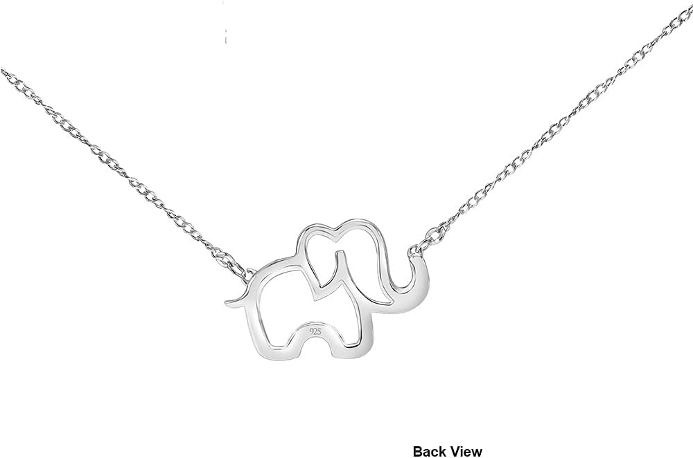 ELEPHANT LOVE- This diamond elephant necklace is the perfect gift for the world traveler! Give memories or spark dreams of trips to Asia or African Safari with this elephant pendant. Elephants are good luck charms, extremely intelligent and the perfect symbol of friendship. With diamond accents on a 925 sterling silver 17" chain this necklace is custom made to sparkle for the perfect present for a friend, daughter, partner, or self.