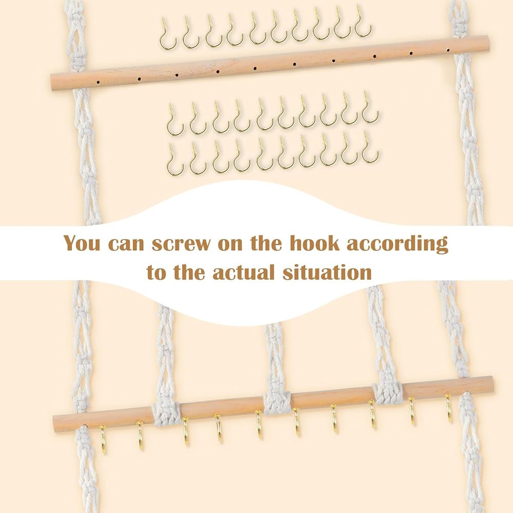 Super Space : Jewelry organizer for wall comes with 30 hooks to meet your daily use.The hook can be rotated 360 degrees for free installation and removal. And the braided rope pattern on both sides can hair bow holder and hang earrings with fish hooks.
