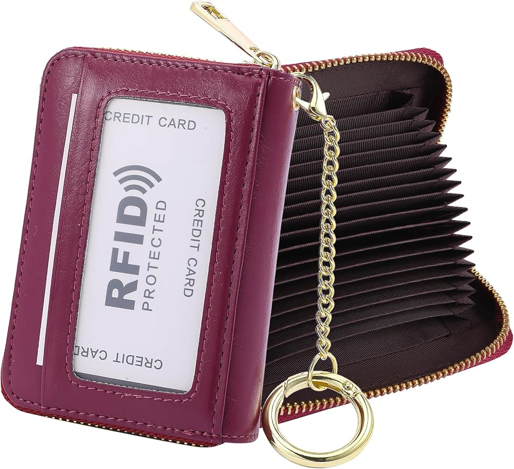 【Simple Design and Flexible Use】: Suitable Size: 11.5 cm x 8.4 cm x 3.2 cm. The accordion style card slots are very suitable to put in a pocket or handbag, so you can easily and neatly turn cards on and off. The metal chain can be easily removed, and can hang the wallet in a handbag or clothes bag.